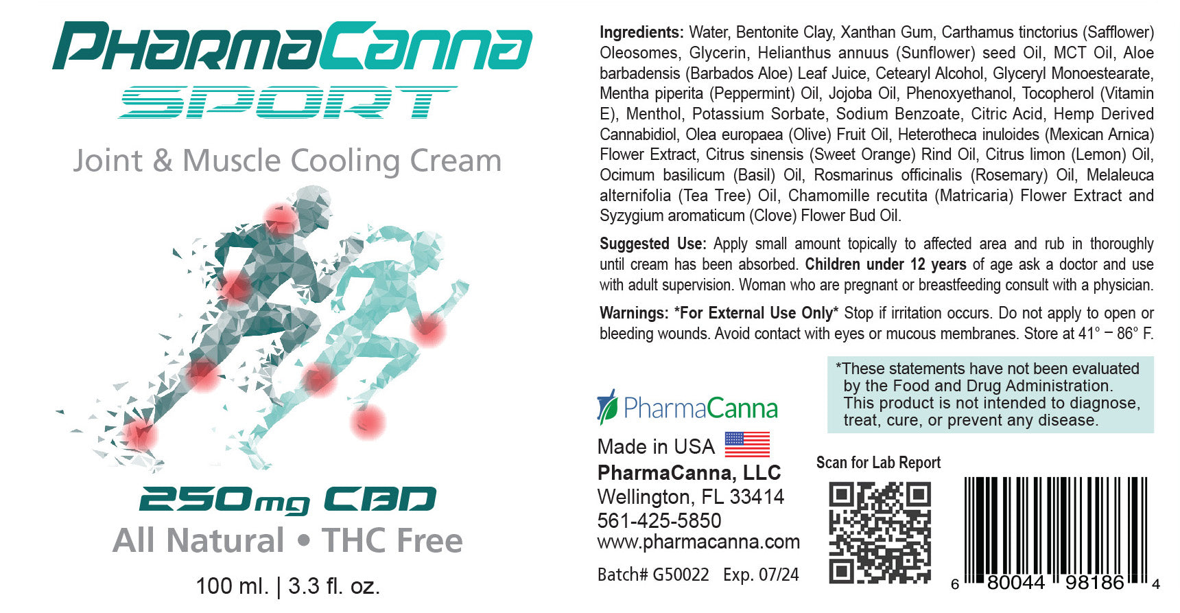 Oleosomes, Glycerin, Helianthus annuus (Sunflower) seed Oil, MCT Oil, Aloe barbadensis (Barbados Aloe) Leaf Juice, Cetearyl Alcohol, Glyceryl Monoestearate, Mentha piperita (Peppermint) Oil, Jojoba Oil, Phenoxyethanol, Tocopherol (Vitamin E), Menthol, Potassium Sorbate, Sodium Benzoate, Citric Acid, Hemp Derived Cannabidiol, Olea europaea (Olive) Fruit Oil, Heterotheca inuloides (Mexican Arnica) Flower Extract, Citrus sinensis (Sweet Orange) Rind Oil, Citrus limon (Lemon) Oil, Ocimum basilicum (Basil) Oil, Rosmarinus officinalis (Rosemary) Oil, Melaleuca alternifolia (Tea Tree) Oil, Chamomille recutita (Matricaria) Flower Extract and Syzygium aromaticum (Clove) Flower Bud Oil.